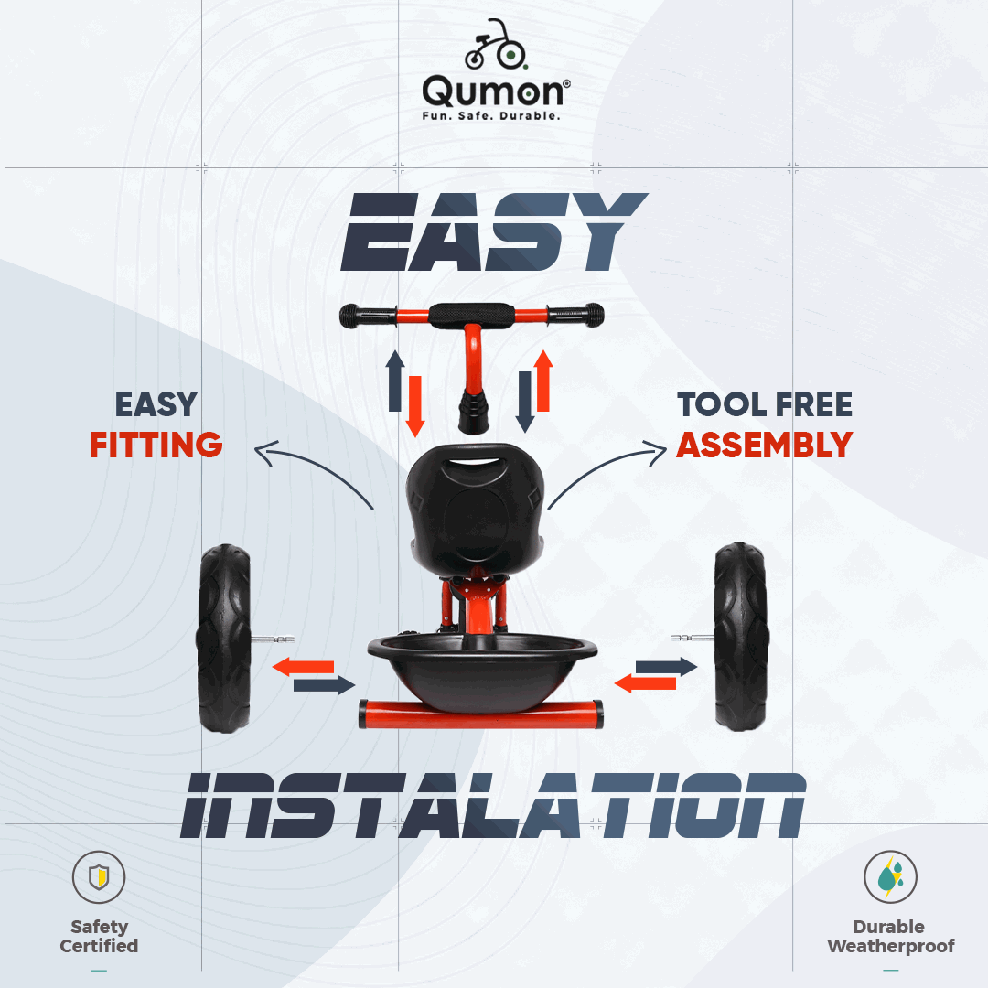 - Easy and Tool free installation: Qumon has made it extremely easy for parents to assemble tricycles without any complex tools in just two minutes.